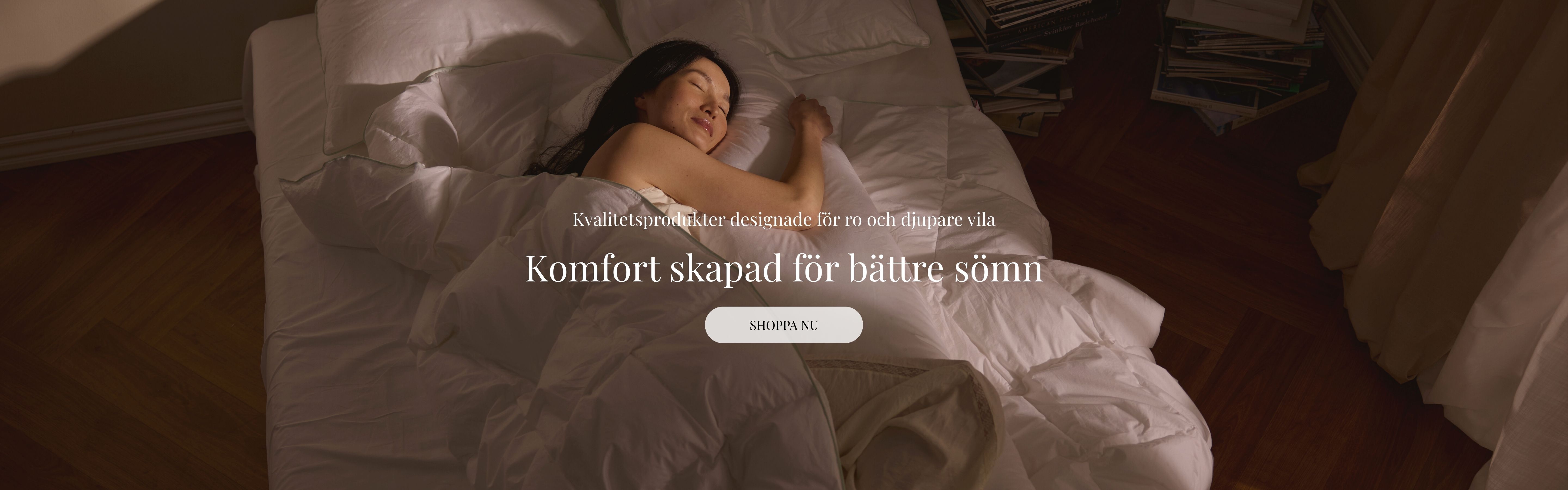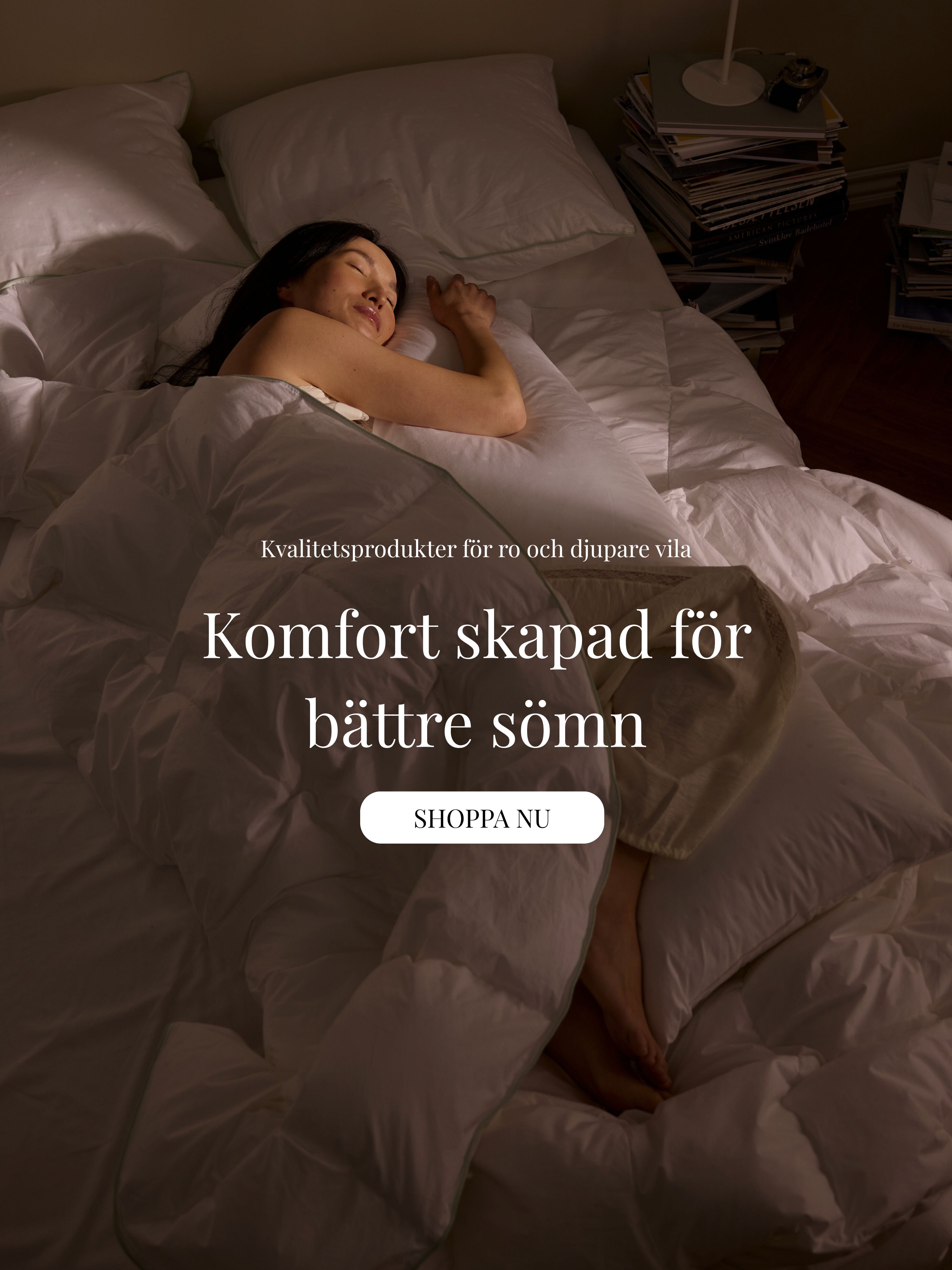 Upplev bättre sömn med omfamnande och fluffiga kuddar och täcken.